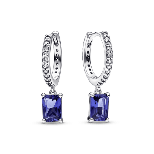 Mirdzošie riņķa auskari ar ziliem taisnstūrveida kritāliem