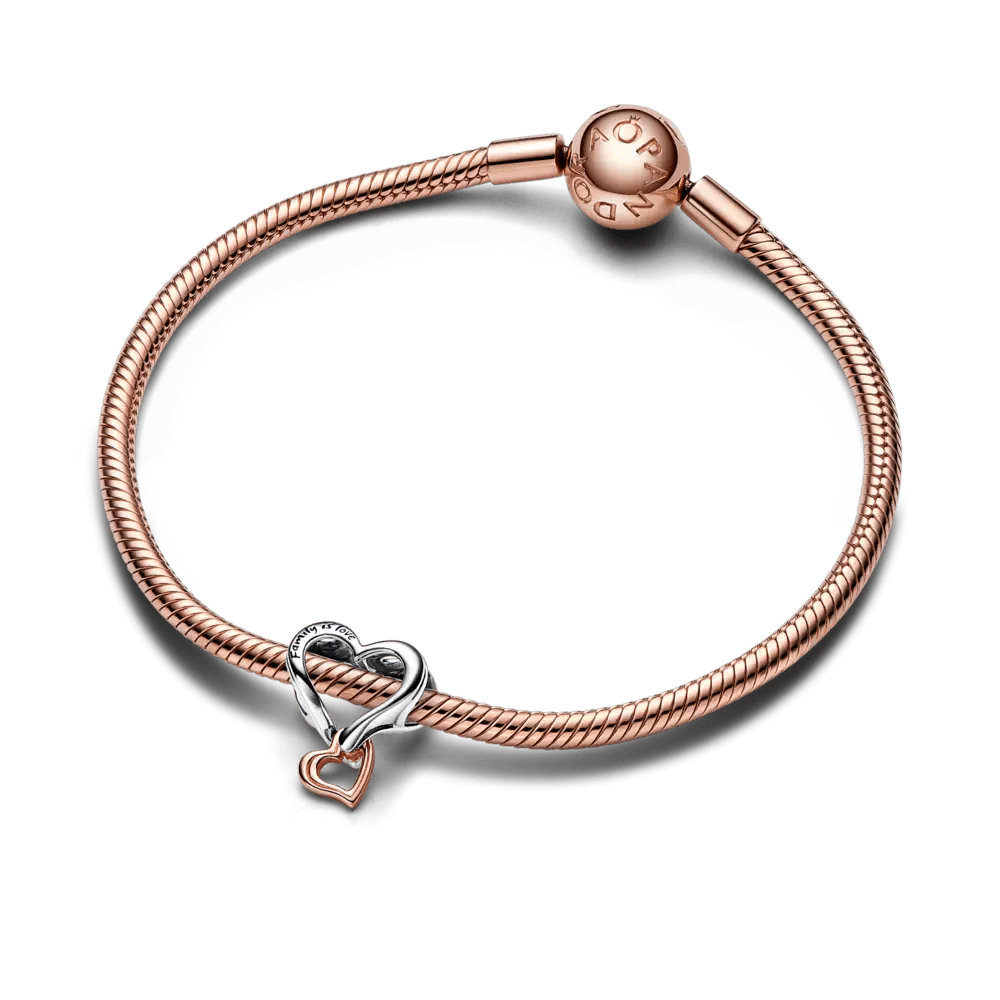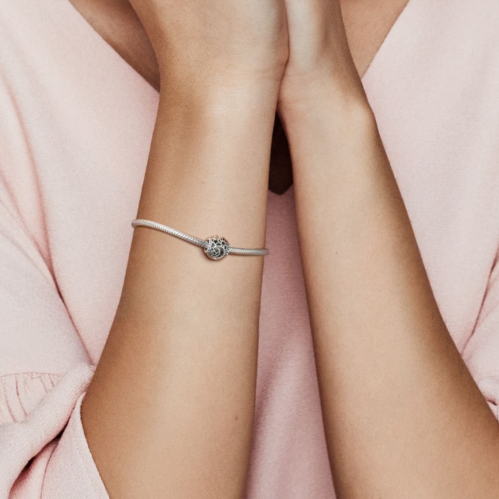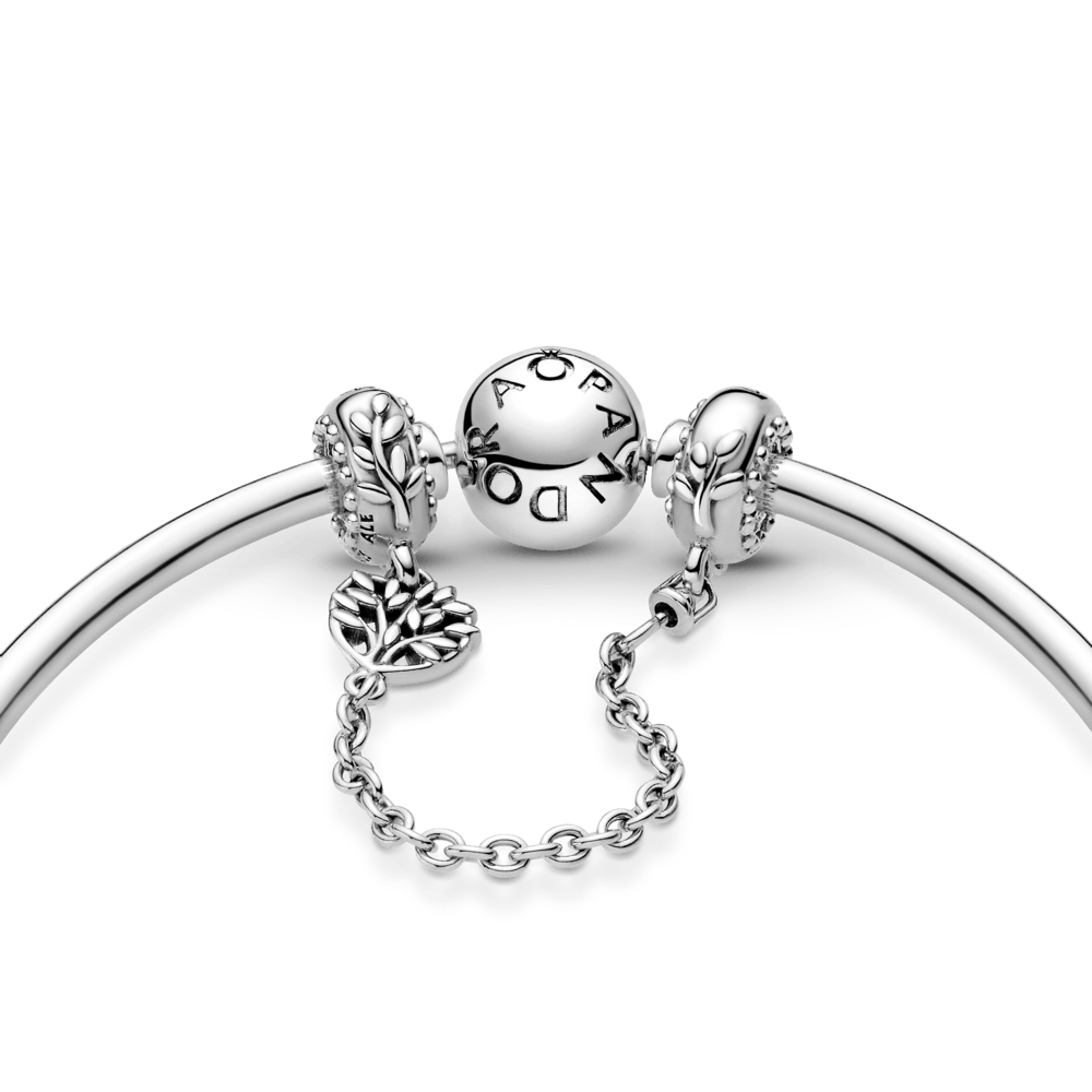 Pandora Moments čūskas raksta ķēdītes rokassprādze ar ģimenes koka motīvu un sirsniņformas aizdari