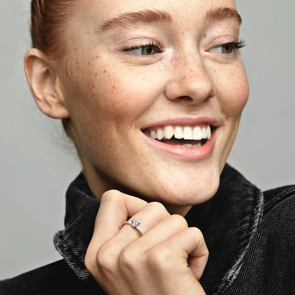 Mirdzošais gredzens ar vienu sirsniņformas akmentiņu ir jaunākais papildinājums mūsu gredzenu kolekcijā. Tā centrā ir redzams caurspīdīgs kubiskais cirkonijs sirds formā. Pulētās stīpiņas sānos ir iegravēts Pandora logotips. Kombinē šo gredzenu ar citām sudraba rotām, lai panāktu vienkrāsainu tēlu, vai ar citām metāla apdarēm, lai radītu uzmanību piesaistošu tēlu.