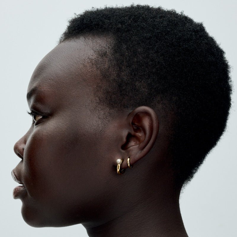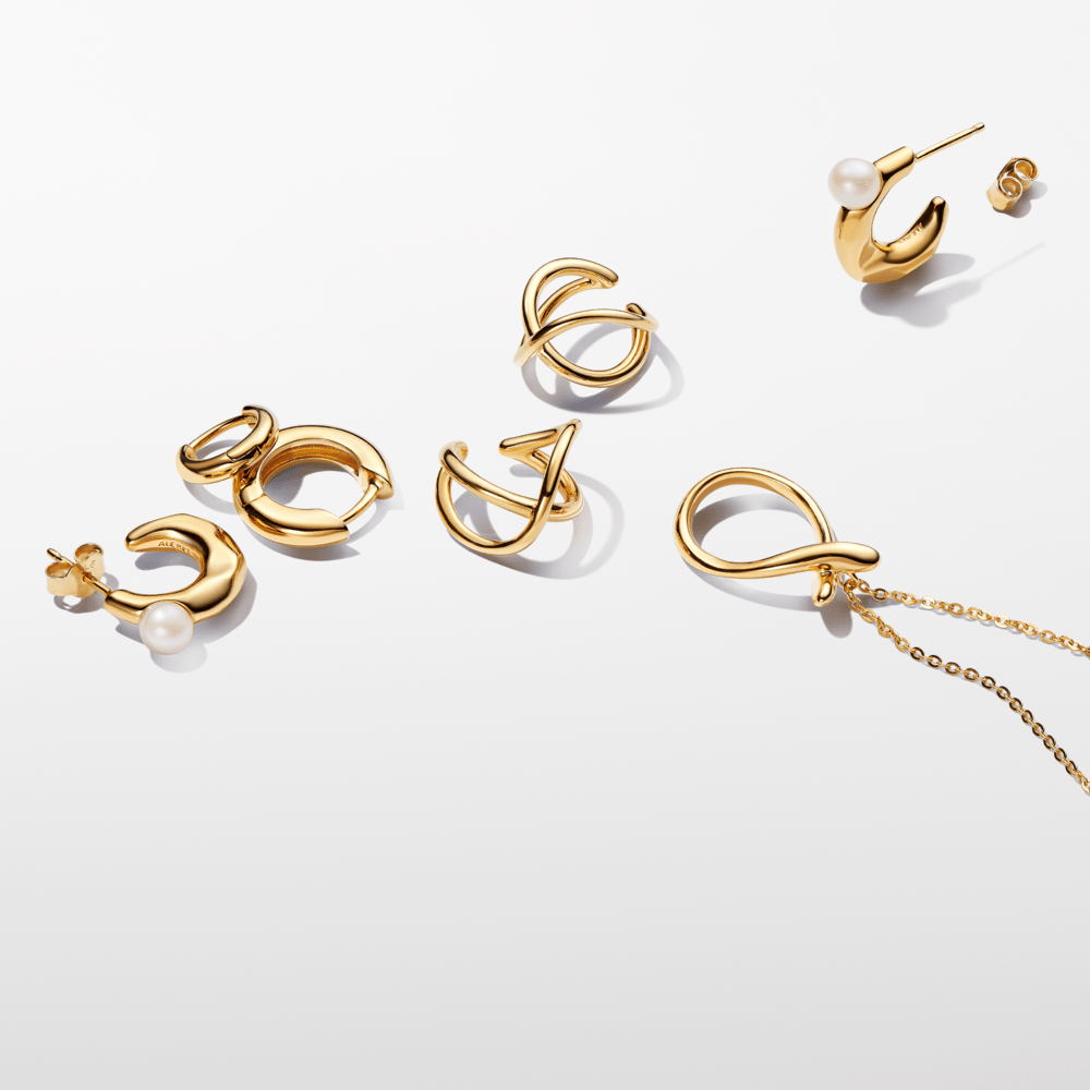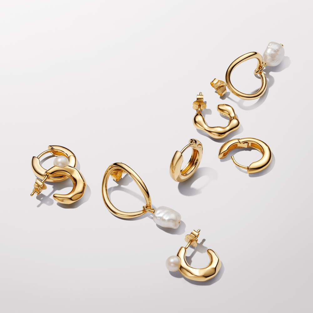 Jūties brīvi ar saldūdens kultivētu pērļu organiskas formas stīpiņu auskariem. Katrā auskarā ir viena apstrādāta saldūdens kultivēta pērle, kas piestiprināta pie organiska izskata 14 k apzeltītas stīpiņas ar ieliektām un izliektām detaļām un slīpētu virsmu. Katra apstrādāta saldūdens kultivēta pērle ir unikāla un var atšķirties pēc izmēra un krāsas; šim materiālam var būt redzams nolietojums. Mūsu saldūdens kultivētās pērles ir apstrādātas ar balināšanas un mirdzumu uzlabojošiem līdzekļiem.