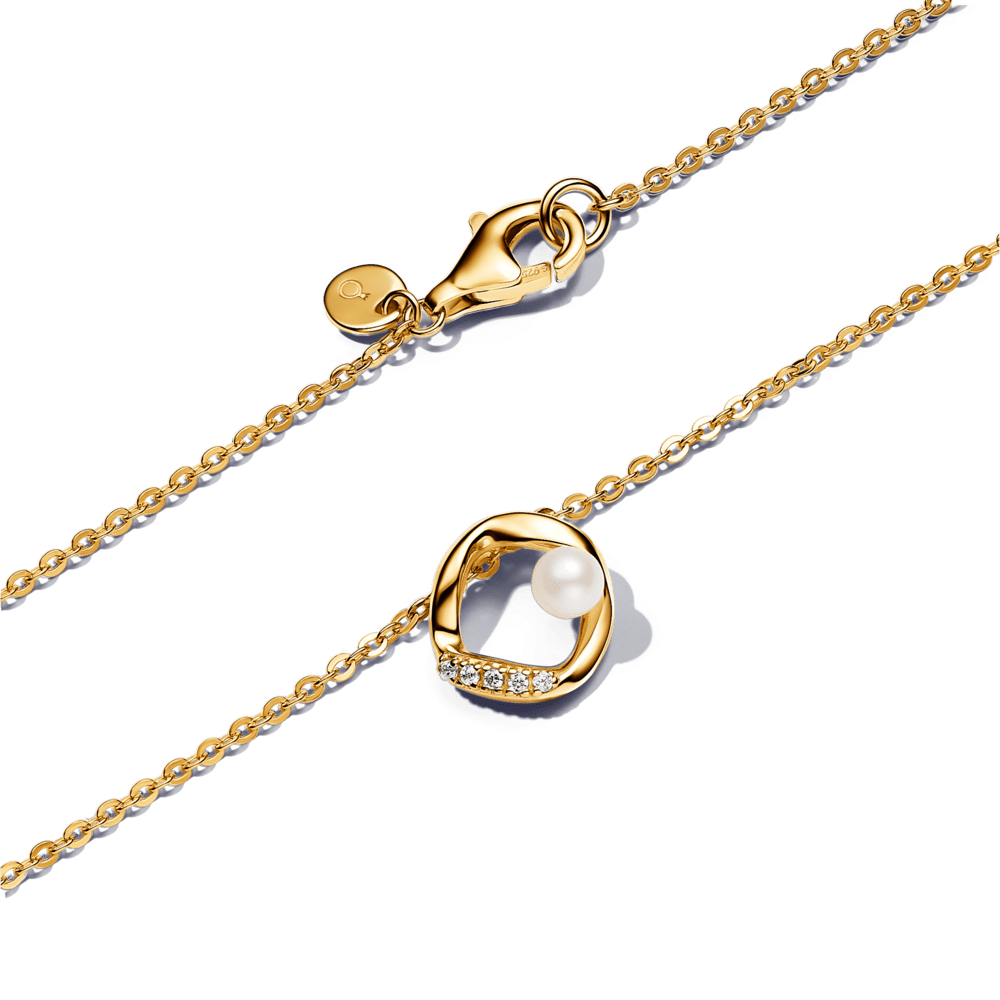 Jauns risinājums klasikai ar organiskas formas Pavé apļveida un saldūdens kultivētu pērļu Collier kaklarotu. Šai kaklarotai ir organiskas formas 14 k apzeltīts apļa kulons ar vienu apstrādātu saldūdens kultivētu pērli un Pavé rindu. Kaklarota ir regulējama, un kulons brīvi slīd un nav noņemams. Katra apstrādāta saldūdens kultivēta pērle ir unikāla un var atšķirties pēc izmēra un krāsas; šim materiālam var būt redzams nolietojums. Mūsu saldūdens kultivētās pērles ir apstrādātas ar balināšanas un mirdzumu uzlabojošiem līdzekļiem.