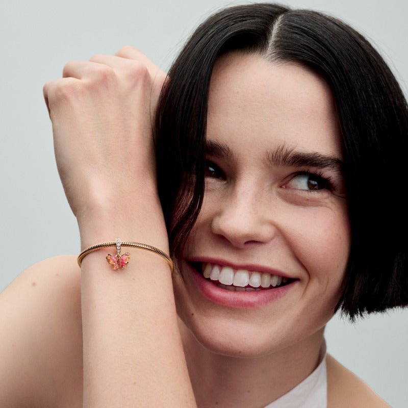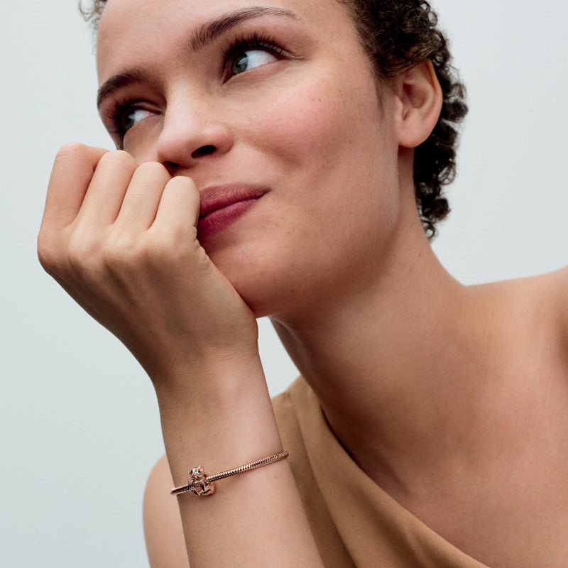Mūsu gludā tipa aproce siltā Pandora Rose metālu nokrāsā rada satriecošu dizainu. Kombinē uz tās amuletus, radot harmoniju ar klipšiem, kuros iestrādāta silikona saķere.