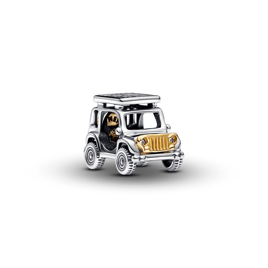 Atmodini sevī piedzīvojumu meklētāja garu ar šo divtoņu piedzīvojumu auto amuletu. Šis sudraba amulets attēlo automašīnu ar visām detaļām, sākot no sānu spoguļiem līdz riteņiem un reālistiskām skrāpējumiem. 14 k apzeltīta rezerves riepa un grils piešķir kontrastu, savukārt dzirkstošie akmentiņi kalpo kā priekšējie un aizmugurējie lukturi. Uz mašīnas paceltā jumta burti vēsta "ADVENTURE", bet uz automašīnas apakšdaļas - "HAPPINESS is planning a trip with those you LOVE". Ceļa zīme vasaras piedzīvojumiem.