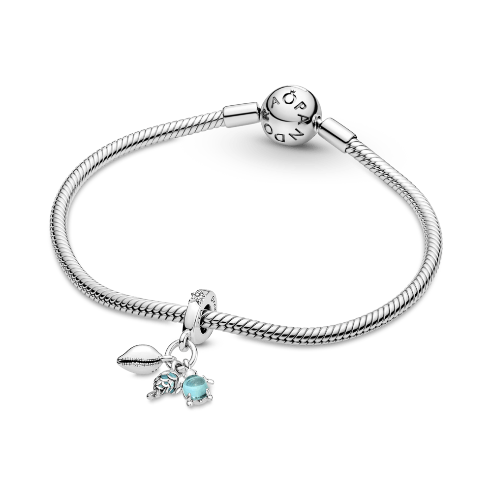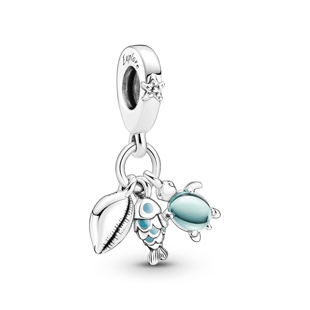 Dodies snorkelēšanas piedzīvojumā un satiec sapņainās dziļjūras skaistās radības, nēsājot šo okeāna tēmai veltīto trīskāršo piekarināmo amuletu. Šajā sudraba piekarināmo amuletu trio apvienota gliemežnīca, zvīņaina zivs ar tirkīzkrāsas emaljas detaļām un jūras bruņurupucis ar bruņām no divos toņos iekrāsota zila un zaļa Murano stikla. Enkuriņš veidots kā sīciņa, reljefa jūras zvaigzne un ziņojumiem "Explore” (izpēti) un "Dream” (sapņo), kas atgādina par to, ka jāmeklē nākamais piedzīvojums, lai kāds arī tas būtu.