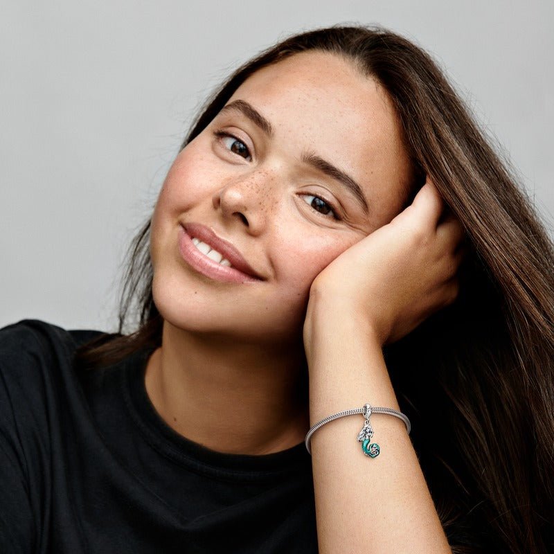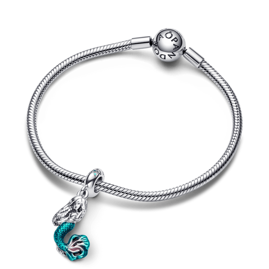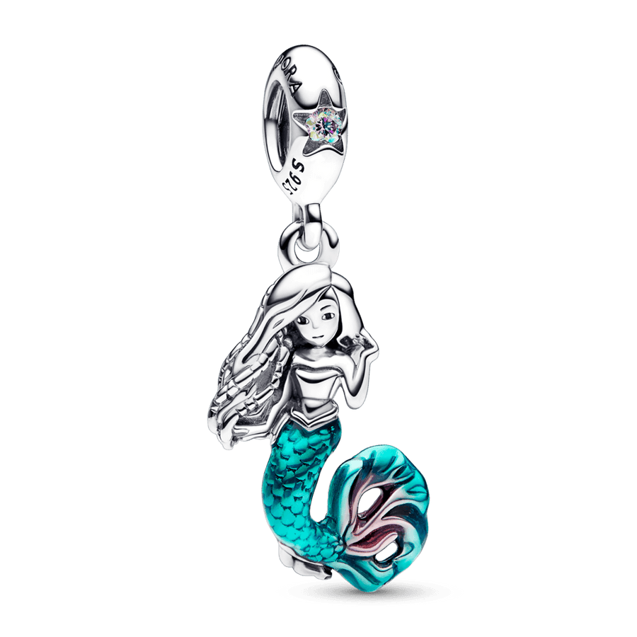Dodies tālāk par jūru, nēsājot mūsu piekarināmo Disneja Mazās nāriņas Arielas amuletu, kura iedvesmas avots ir jaunā filmas adaptācija. Godini savu brīvo garu un ziņkārīgo sirdi, pievienojot šo sudraba amuletu savai kolekcijai. Arielas seja un matu cirtas ir atdzīvinātas ar iegravētām detaļām, un uz viņas nāriņas astes mirdz ar roku uzklāta jūraszila un ceriņkrāsas emalja. Enkuriņu rotā mirdzoši, bordo krāsā izvietoti caurspīdīgi kubiskie cirkoniji, mirdzoši kā saule, kas atstaro okeāna viļņus. Turi Arielu blakus kā atgādinājumu sekot savai sirdij, kur sākas piedzīvojumi.