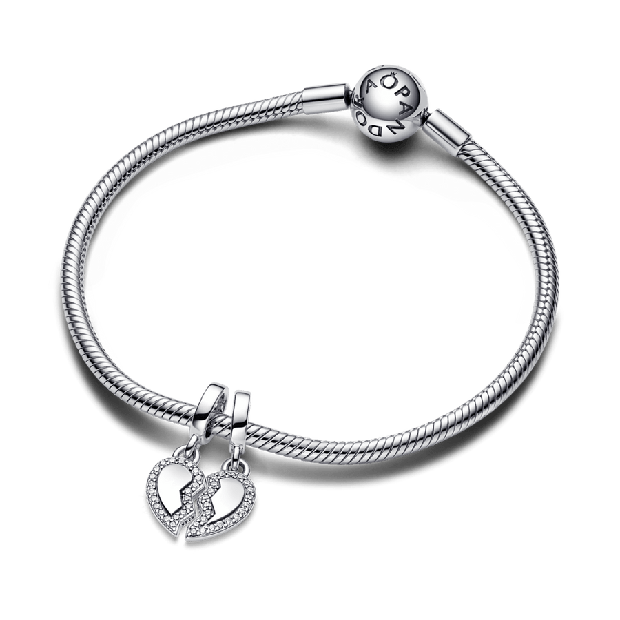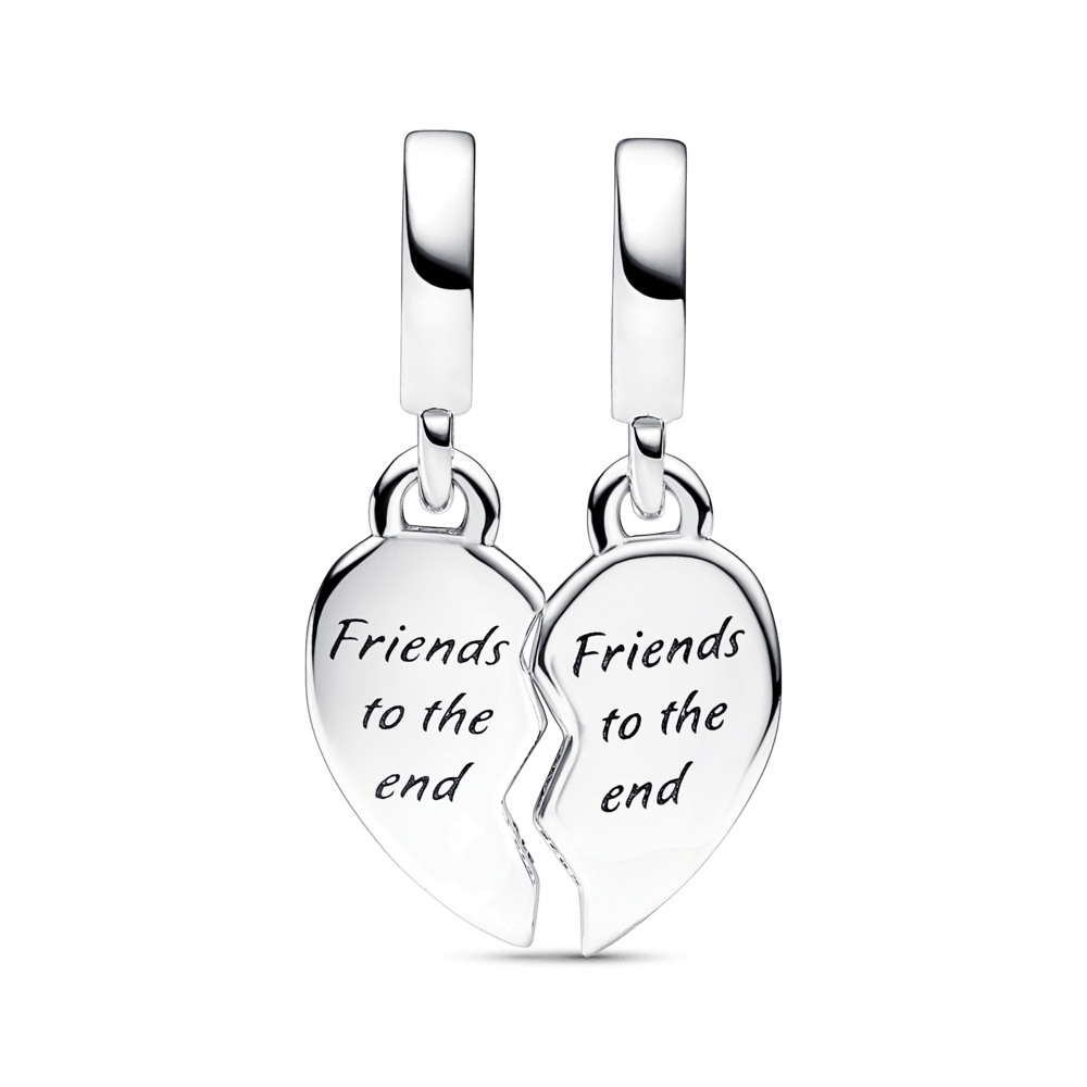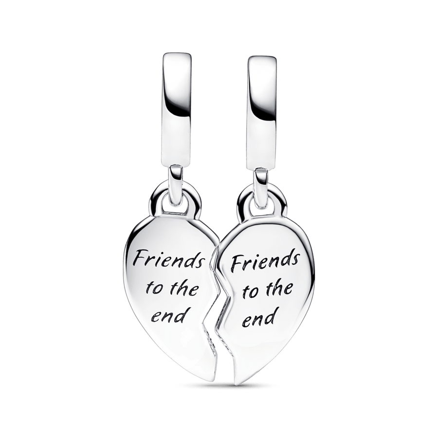 Parādiet saviem draugiem, ka viņi ir reti sastopams dārgums, ar sadalāmo draudzības amuleta piekariņu. Uzdāvinot savam labākajam draugam vai draudzenei vienu pusīti 925. proves sudraba amuleta, uz kura abām pusēm iegravēti vārdi “Friends to the end” (Draugi līdz pašām beigām), var paust savu pieķeršanos labāk, nekā izsakot vārdos. Abām sirsniņas pusēm ir pulēts centrs ar akmentiņiem gar kontūru. Sirdsveida rotai ir plaisa vidū, kas savieno abas puses vienā formā. Labu draugu ir grūti atrast, tādēļ godiniet savējo ar īpašo “Pandora Moments” amuletu, kas simbolizē jūsu saikni.