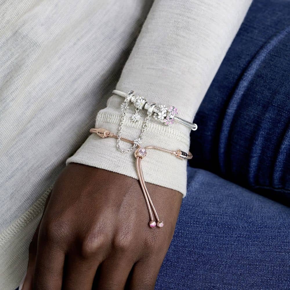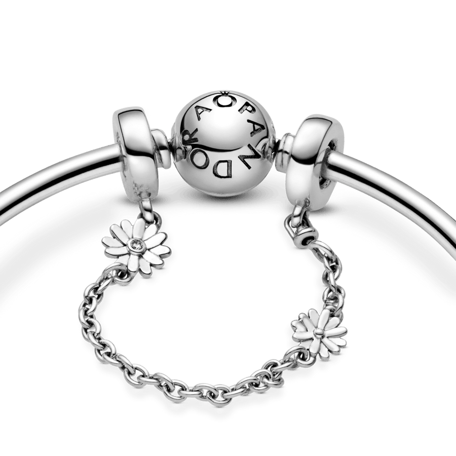 Izkārto savus pavasara kolekcijas amuletus droši, izmantojot šo Pandora Moments drošības ķēdītes amuletu ar margrietiņas motīvu. Šai sudraba drošības ķēdītei ir divu dažādu izmēru margrietiņu rotājumi. To nēsājot, amuleti būs stabili izkārtoti uz tavas Pandora Moments rokassprādzes, vienlaikus panākot svaigu un stilīgu koptēlu. Margrietiņu drošības ķēdīti rotā viens mirdzošs kubiskais cirkonijs, un tās iedvesmas avots ir drosme un brīvības mīlestība, ko šis smalkais zieds simbolizē. Kombinē to ar citiem ziedu amuletiem, lai panāktu patiesi pavasarīgu tēlu.